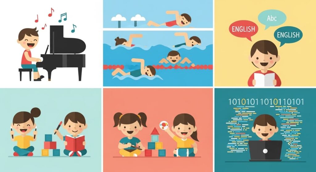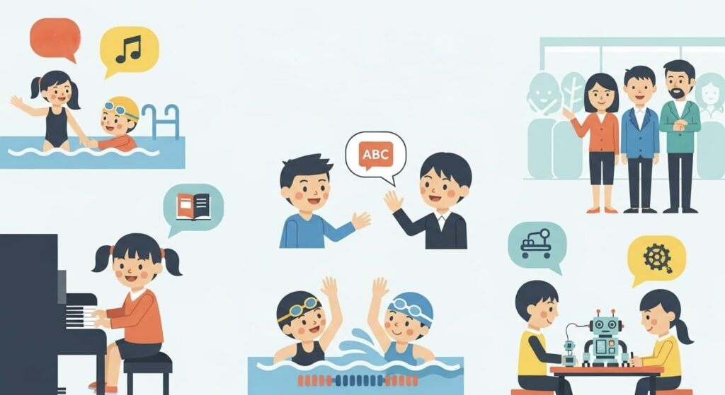 文部科学省や東大家庭教師の調査によると、「水泳」「ピアノ」「英会話」が3大定番で、どれも非認知能力(集中力・自己表現力・持続力)に強く関連しています。
