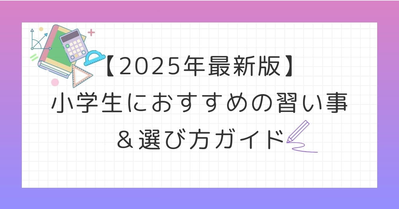 小学生にとっての習い事は、単なる「お稽古」ではなく、将来の自己肯定感や社会性、学力にもつながる大切な経験です。